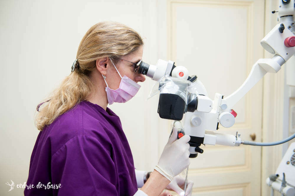 Je sers ainsi de correspondante pour des confrères (Endo, Paro, Soins). Je prends également en charge des patients intégralement, ou pour la phase préparatoire et ré-adresse ensuite. Les actes de soins et d'Endodontie sont faits sous champ opératoire (digue) et sous microscope opératoire ; les actes de parodontologie sont réalisés sous loupes (détartrage), sous microscope opératoire (pour les Préparations Initiales / surfaçages) et/ou avec un microscope de table à contraste de phase. Le coaching permet de rendre autonome les patients dans l'entretien de leur bouche et d'éviter de futurs problèmes (parodontite, gingivite, caries).
